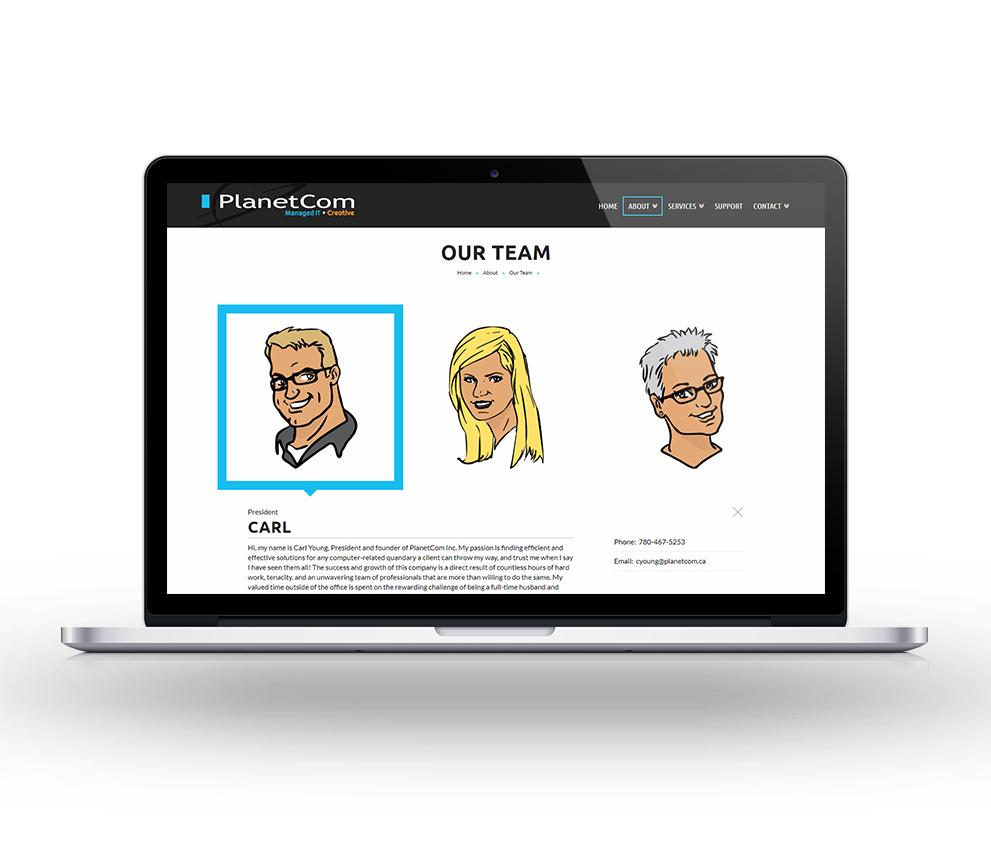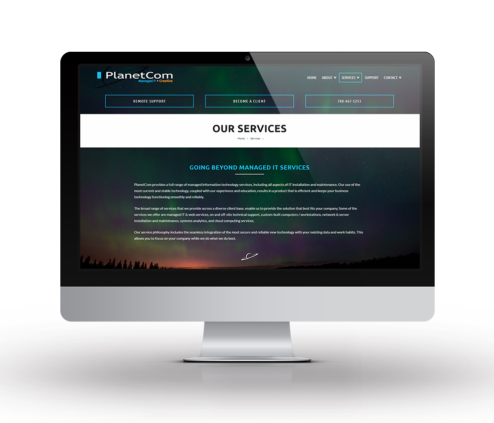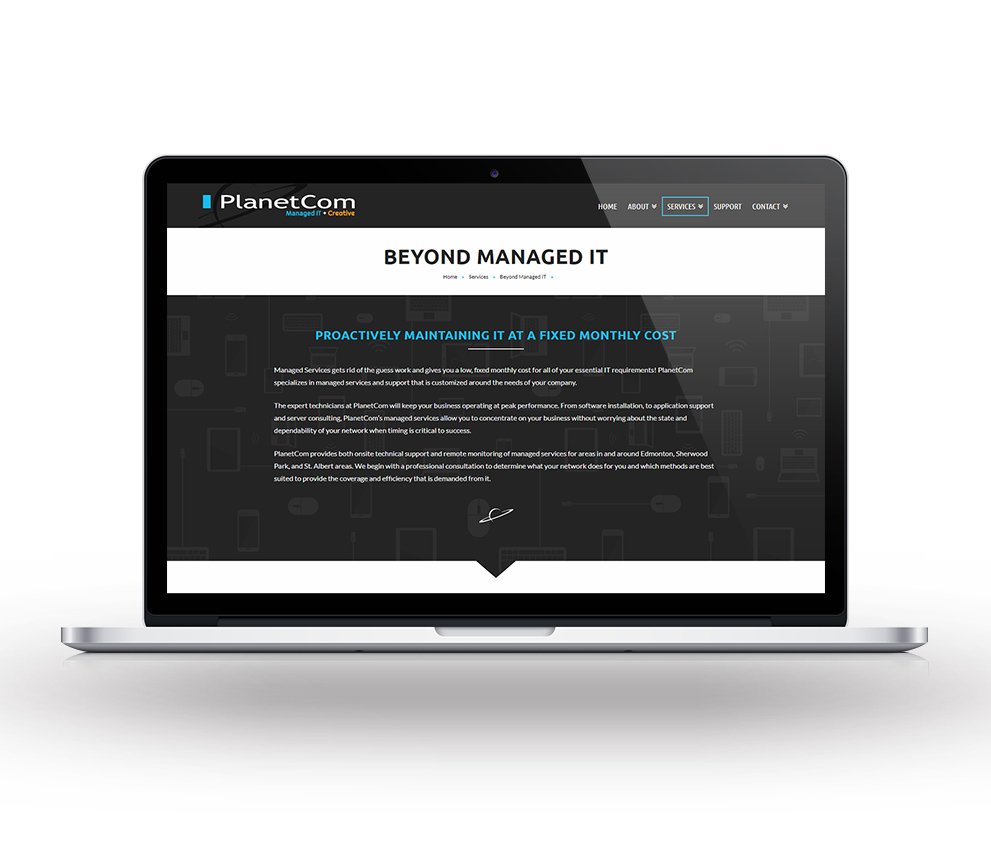 The objective for this project was to completely redesign the website for PlanetCom, a Managed IT company based in Sherwood Park and the company I currently work for. It had been around 4 years since I had done a full redesign of the site and another overhaul of the look, feel, and content was much needed. We were looking for something clean and modern, with streamlined content that really focused on what we do best.